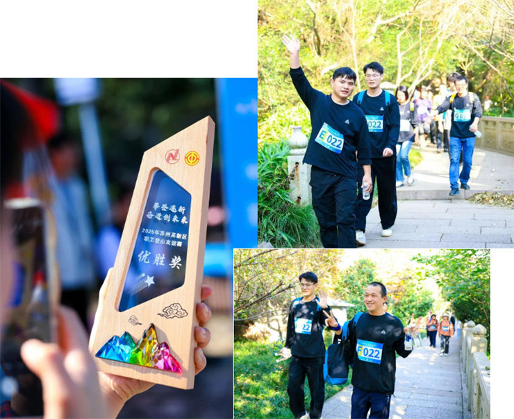 11月16日,苏州高新区总工会举办“攀高逐新谋发展,凝心聚力启新程”职工登山友谊赛,比赛在大阳山国家森林公园热烈展开,虎丘影像的8名队员奋勇争先,与40支参赛队伍一起力攀高峰,顺利完赛,获得“优胜奖”。